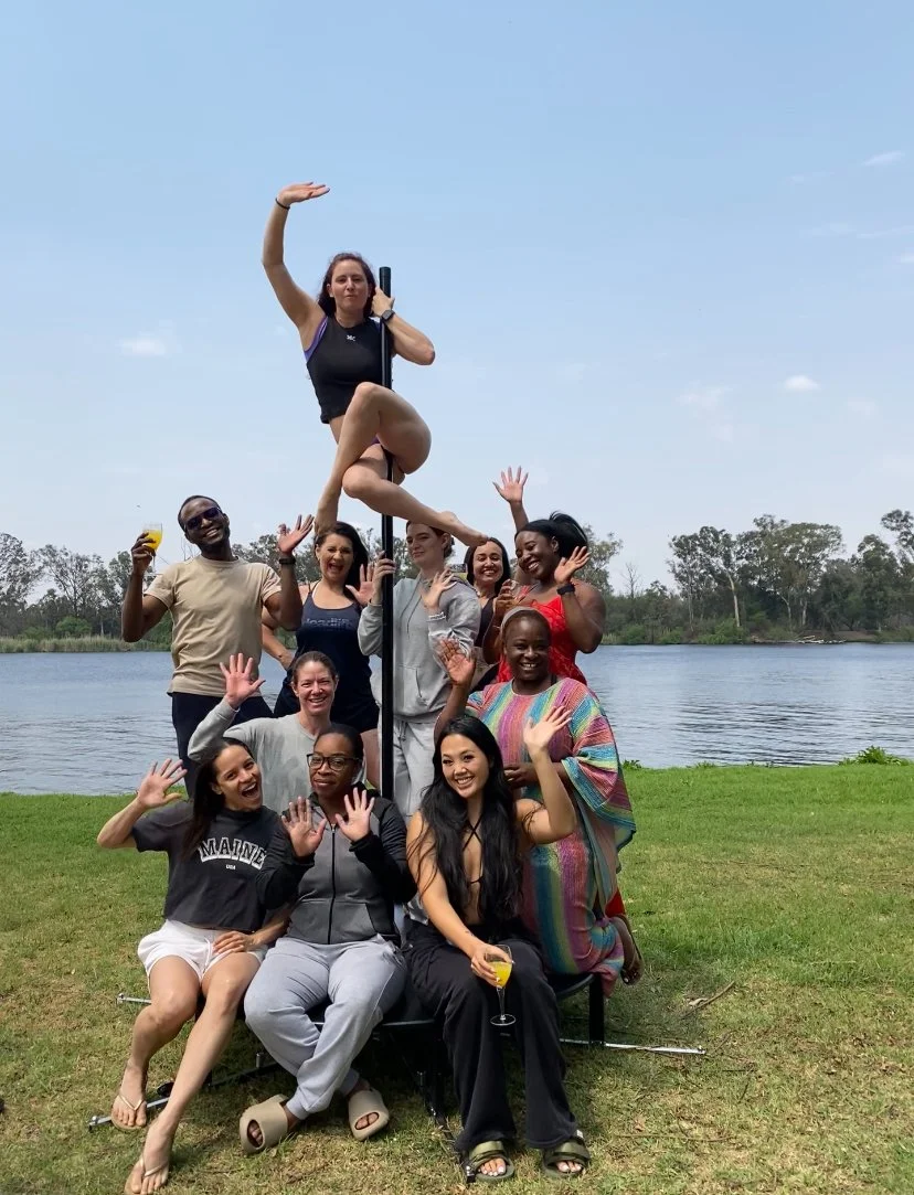 Pole Playground’s Pole Retreats at the Vaal River are all about embracing community, learning, and personal growth. Offering the perfect opportunity to tap into your full potential while taking a break from the demands of city life. Surrounded by nature’s tranquility, participants can relax, have fun, and deepen their pole fitness practice in a supportive, inspiring environment. Whether you’re aiming to master new skills or simply recharge, this retreat fosters connection, empowerment, and rejuvenation. Our retreats are custom designed for all levels and goals, we host small groups to ensure no one gets lost in the crowd .